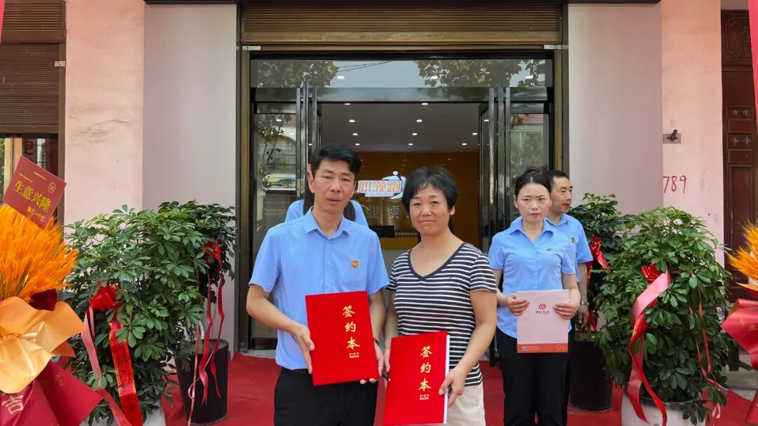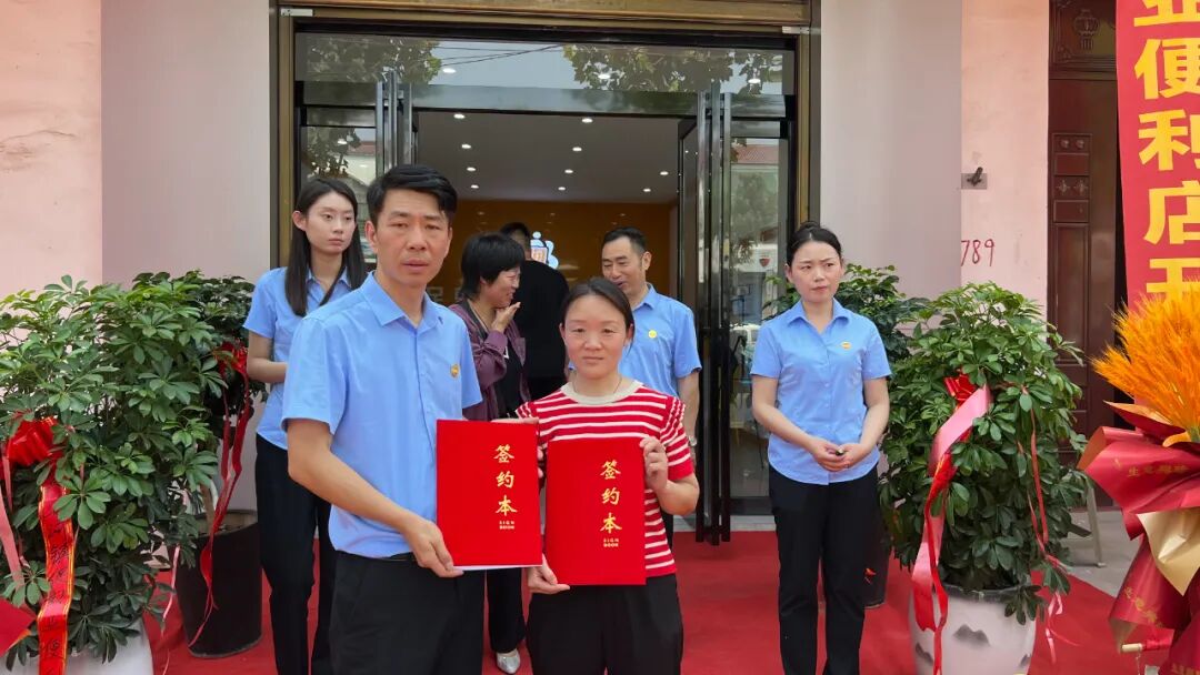 剪彩的喜庆气氛尚未平息,现场又迎来振奋人心的时刻——两位新合伙人签约仪式。在嘉宾的共同见证下,贯仁人力总经理尹向征与新加入的合伙人代表郑重签约并合影留念。这一环节生动印证了“促就业便利店”创新模式的吸引力与市场潜力,也标志着贯仁人力在峪河镇的实践成功吸引了更多志同道合者加入,共同拓展下沉市场就业服务的新版图。