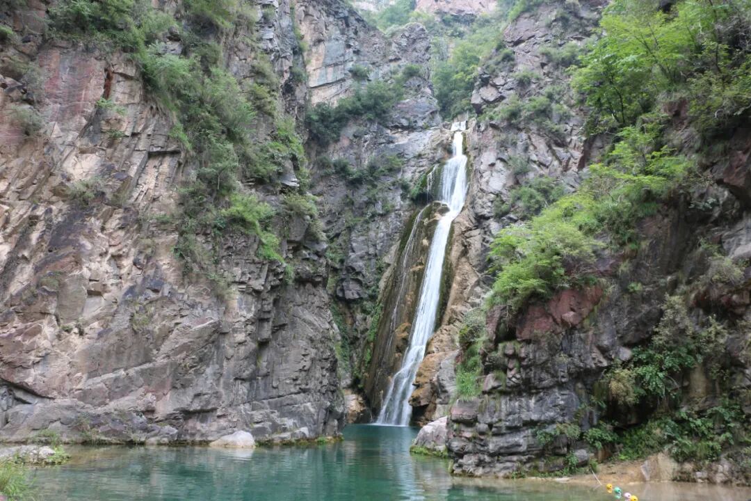 大巴车一路欢歌笑语,载着我们驶向目的地。当车辆驶入峡谷怀抱,眼前的景象瞬间攫住了所有人的目光——层峦叠嶂,满目苍翠,碧绿如玉的潭水在阳光下闪烁着宝石般的光泽,奇石嶙峋点缀其间。宝泉的水,清澈得能看见水底摇曳的水草和光滑的鹅卵石,宛如一条流动的翡翠绸缎,穿行于巍峨的山谷之间。初抵宝泉,这份未经雕琢的自然之美,已然为我们洗去了一路风尘和工作的疲惫,精神为之一振。