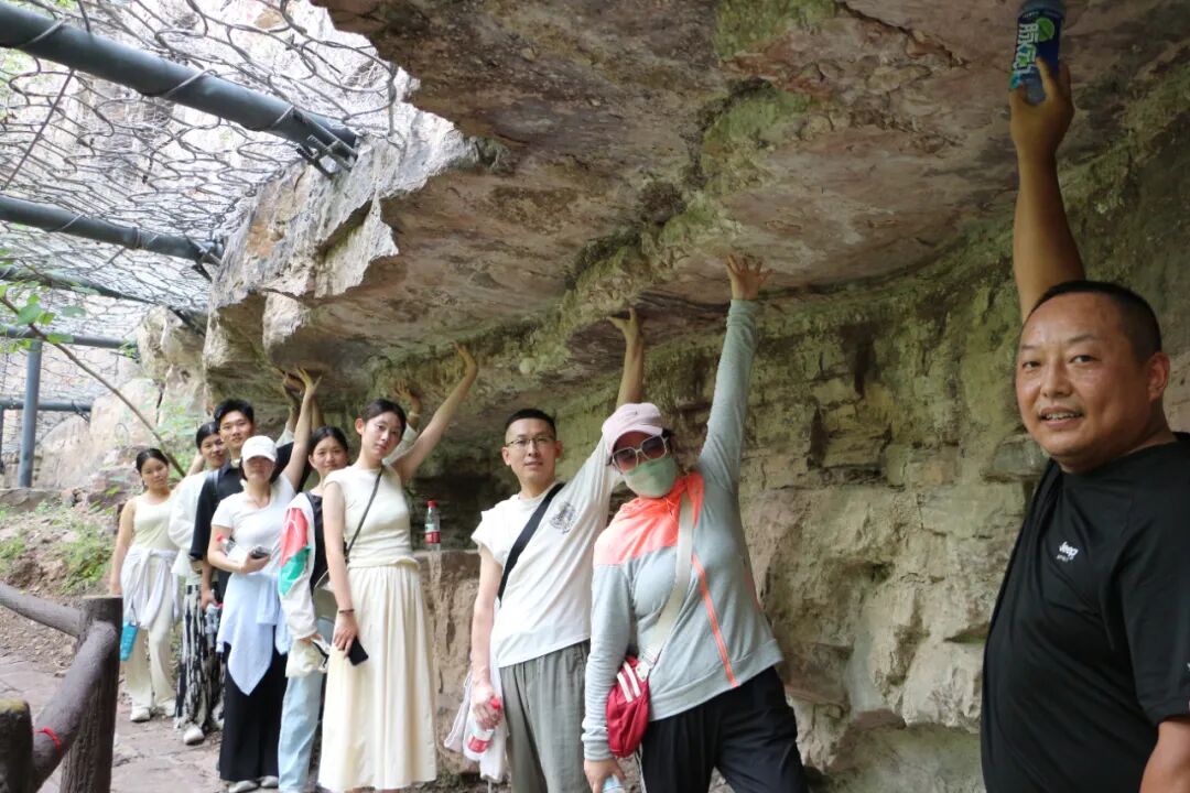 团建的重头戏,自然是深入宝泉大峡谷的徒步。我们三五成群,沿着蜿蜒的栈道溯溪而上。脚下是潺潺流水,身边是笑语盈盈的同事。平日里并肩作战的伙伴,此刻成了互相鼓励、分享零食、争相拍照的“驴友”。飞瀑流泉轰鸣而下,激起清凉的水雾;峭壁栈道惊险刺激,引来阵阵惊呼与扶持;曲径通幽处,总有惊喜的景色等待发现。攀爬时的互相拉一把,陡峭处的善意提醒“小心脚下”,体力不支时的一句“加油,快到了”......峡谷的每一步,都深深印刻着团队协作的温暖与同行的快乐。汗水浸湿了衣衫,但笑容从未离开过脸庞,那份同甘共“汗”的经历,让彼此的心靠得更近。