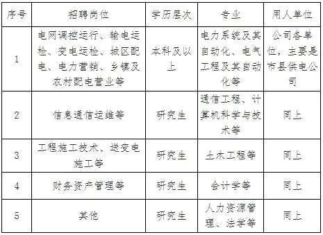 (二)用人单位公司所属市、县供电公司,部分直属单位。