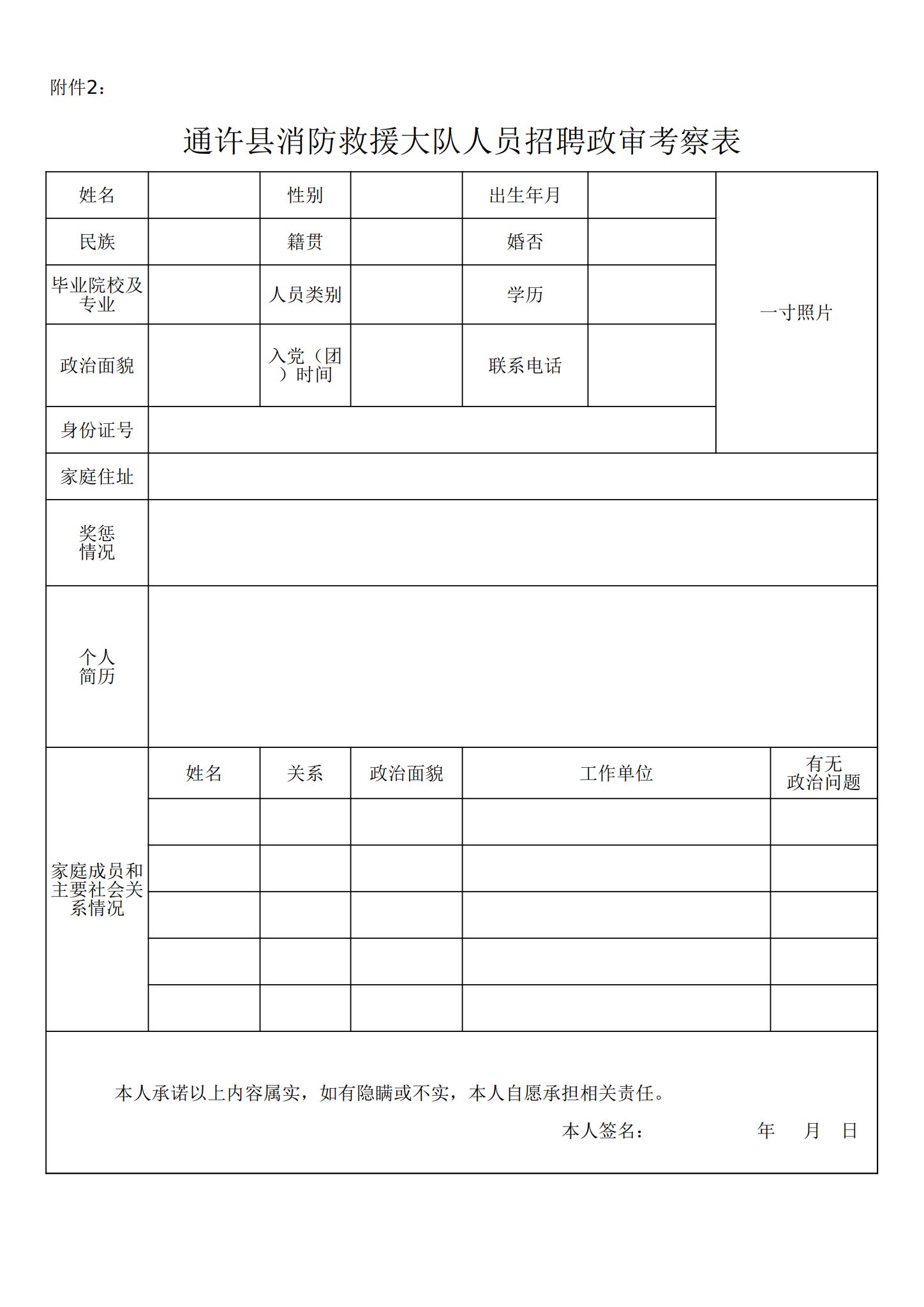 附件2:通许县消防救援大队人员招聘政审考察表